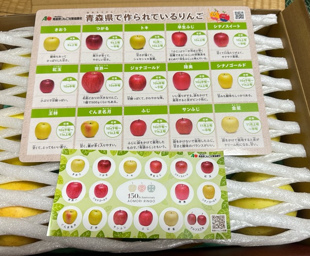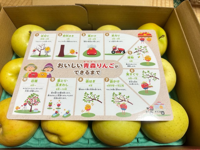青森で取れるりんごの種類が書かれた用紙が入っていたりと、