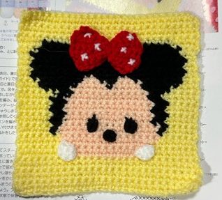 ディズニーツムツムのニット&クロシエ2〜ミニー(棒針編みをかぎ針編みで編む)