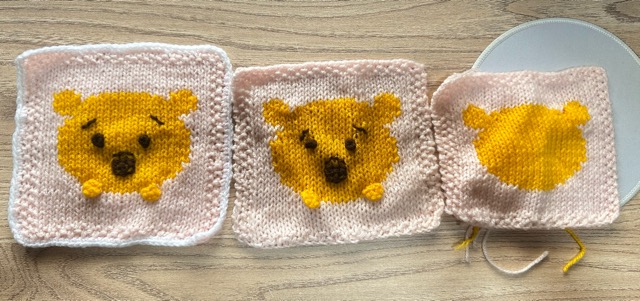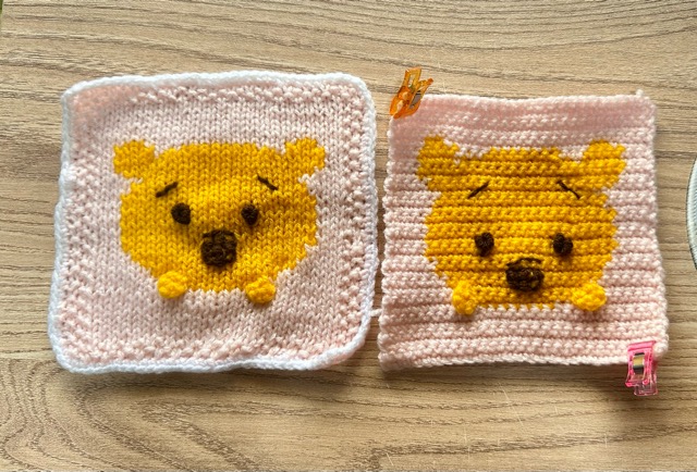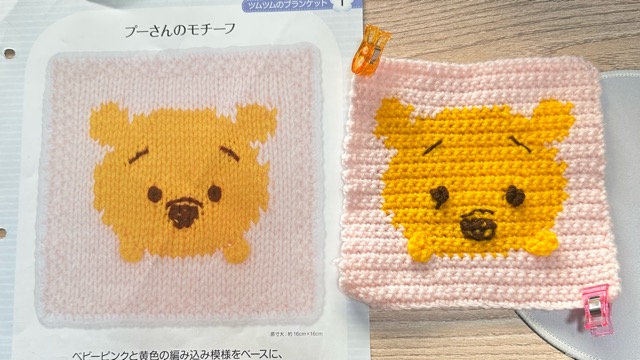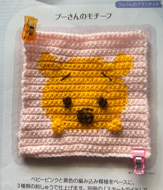 プーさんの部分は棒針の編み図そのままの目数・段数で編めました。