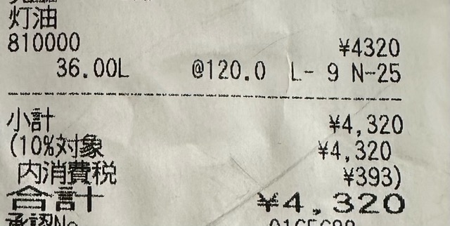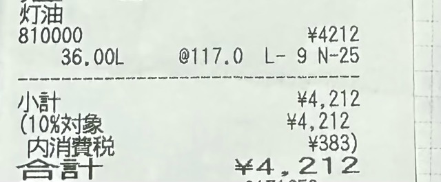ガソリン同様、もちろん灯油も値上がりしていました。