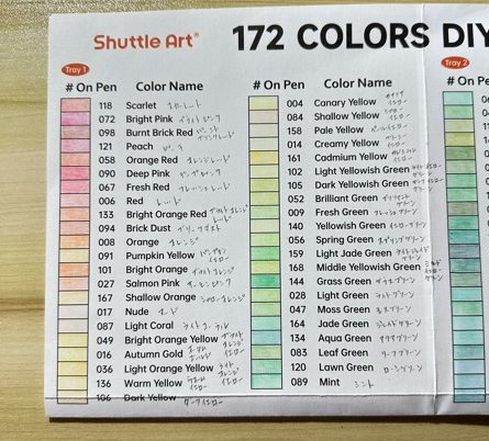 Shuttle Art 色鉛筆 172色のカラーチャートを作ってみた